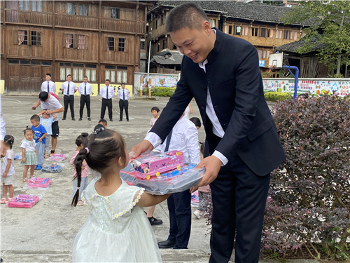 次日,亮剑教育集团董事长李琳先生率管理层部分代表一行,来到了广西桂林市龙脊镇大寨小学,向在校师生们捐赠了助学物资与慰问金,向他们表达了谢意!感谢老师们默默无闻地在艰苦贫困的环境之下坚守教育事业,用自己的青春与热血无私地浇灌着祖国的花朵,让贫困山区的孩子们看到了未来和希望,也为祖国培养了新的接班人!