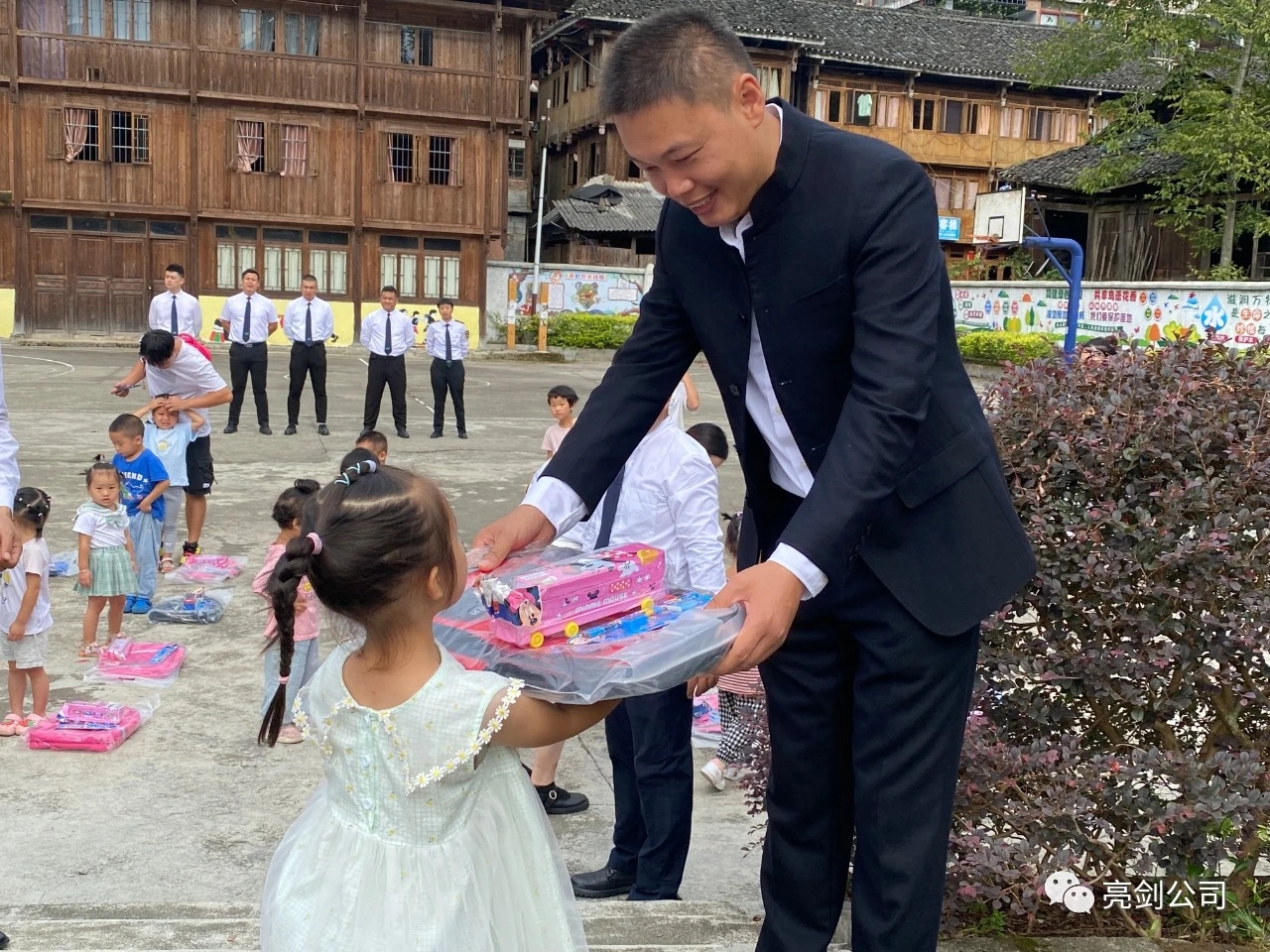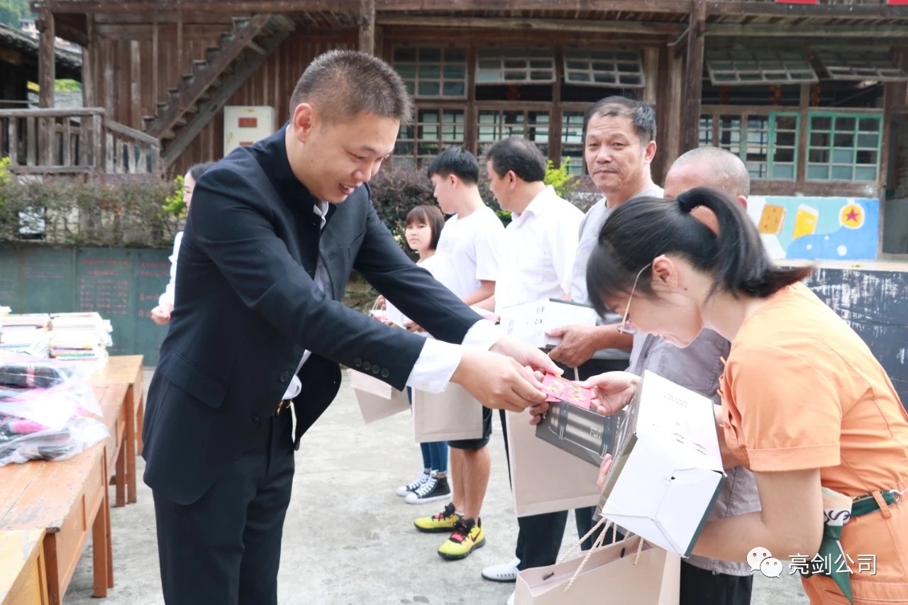 次日,亮剑教育集团董事长李琳先生率管理层部分代表一行,来到了广西桂林市龙脊镇大寨小学,向在校师生们捐赠了助学物资与慰问金,向他们表达了谢意!感谢老师们默默无闻地在艰苦贫困的环境之下坚守教育事业,用自己的青春与热血无私地浇灌着祖国的花朵,让贫困山区的孩子们看到了未来和希望,也为祖国培养了新的接班人!