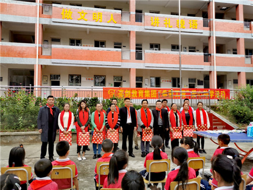 下午,亮剑教育集团董事长李琳先生率管理层一行来到了泸定县兴隆镇沈村小学,向在校的师生们捐赠了助学物资,表达了谢意!感谢老师们默默无闻地在艰苦贫困的环境之下坚守教育事业,用自己的青春与热血无私地浇灌着祖国的花朵,让贫困山区的孩子们看到了希望,也为祖国培养了接班人!助学物资捐赠结束后,学生们向我们表演了精彩的节目,跳起了整齐的鬼步舞。