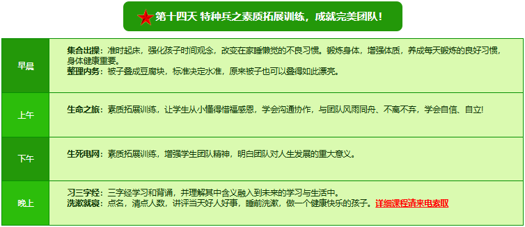 2026北京亮剑军事夏令营21日领袖营课程表