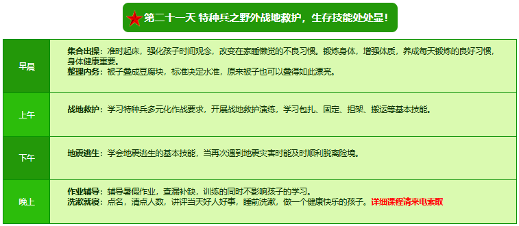 注:由亮剑教育集团施训教练根据天气与实际训练进度适当选择以上训练科目。