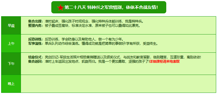 2026北京亮剑军事夏令营28日领袖营课程表